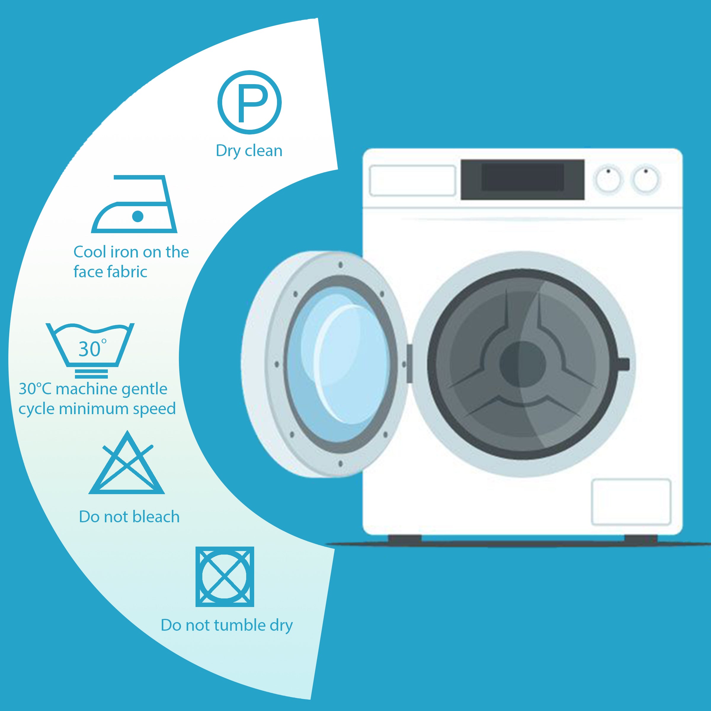 - If Machine Washing : Wash separately inside a mesh laundry bag. Use a gentle/wool cycle with water temperature below 30°C . Use a mild, neutral detergent . Set the spin speed to the lowest setting .